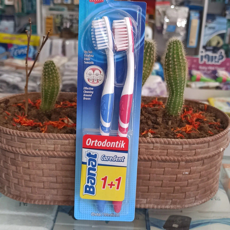مسواک دوتایی ارتودنسی بانات banat orta medium جنس اصل شرکتی