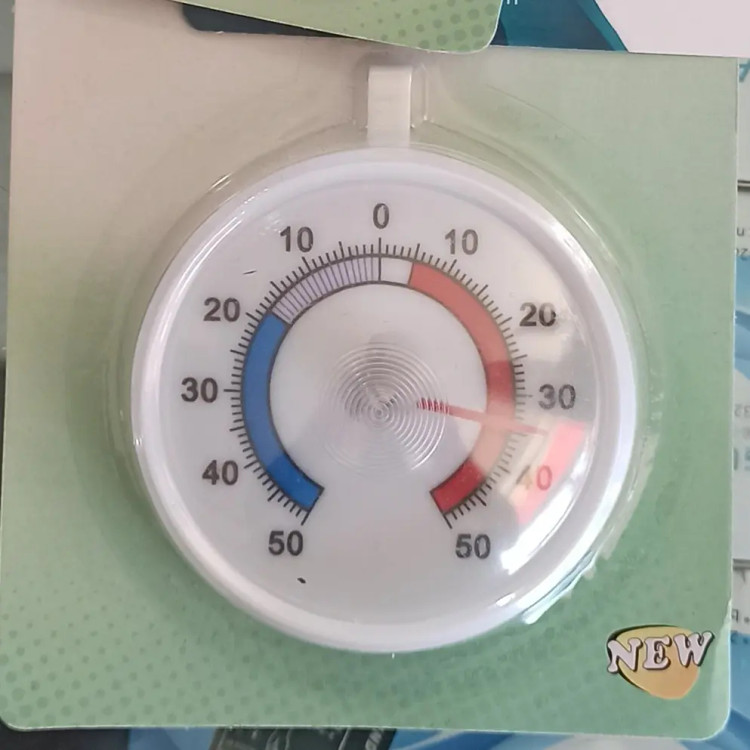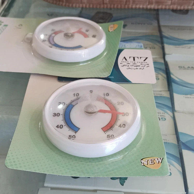 قطر این دماسنج ۷ سانتیمتر میباشد و ابعاد کوچکی با عقربه ای بسیار واضح دارد و دمای زیر صفر آن با رنگ آبی و دمای بالا ۱۰ درجه تا ۵۰ درجه سانتیگراد آن به رنگ قرمز طراحی شده تا خواندن عدد برای چشم راحت تر انجام پذیرد