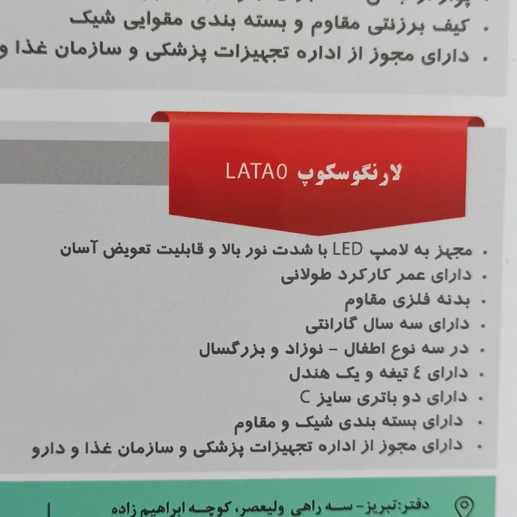 لارنگوسکوپ چهار تیغ بزرگسال مدل LATA0