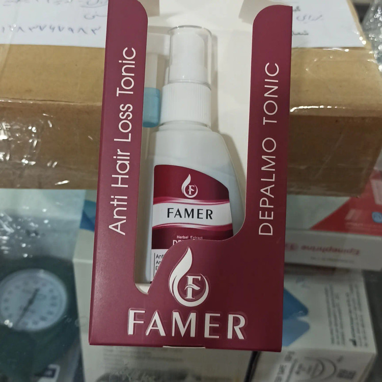 موثر در ریزش موی سر با الگوی ارثی محرک رویش ۱۰۰ درصد افزایش دهنده جریان مویرگی در اطراف فولیکول ها افزایش استحکام بافت اطراف فولیکول ها موثر در رفع ریزش موی سر با الگوی اندروژنیک (ارثی) جلوگیری از تولید دی هیدرونستو تسترون (علل ریزش موی ارثی) روش مصرف: تونیک دپالمو فامر را در مناطقی از پوست سر که دچار ریزش هستند اسپری نمایند (٧ پاف) ١سیسی ترجیحاً شبها و به خوبی ماساژ دهید دقت نمایید که هنگام مصرف پوست سر تمیز و خشک باشد پس از مصرف از شستن پوست و موی سر حداقل ۶ ساعت خودداری نمایید مصرف تونیک را حداقل به مدت ۶ ماه ادامه داده و پس از آن دو بار در هفته به مدت نامحدود استفاده نمایید توصیه می شود (با تجویز پزشک) جهت حصول به نتایج درمانی دو بار در هفته از شامپو دپالمو فامر استفاده شود.