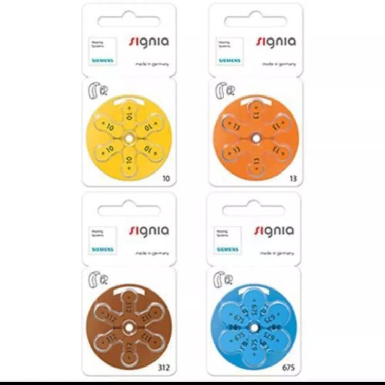 باتری سمعک مارک زیمنس بسته 6 تایی آلمانی میباشد در سایزهای 10 و 12و13و 675
